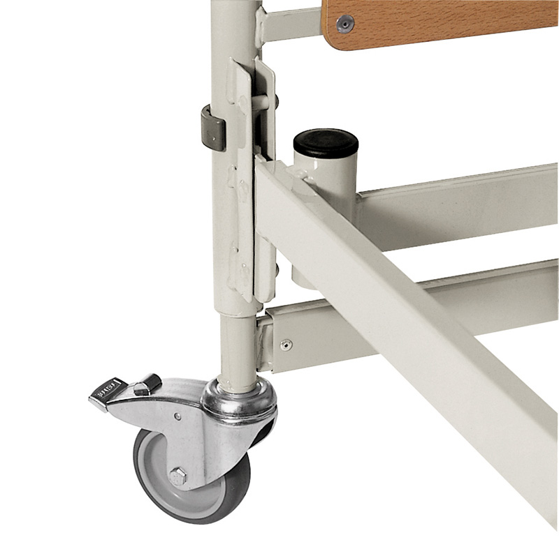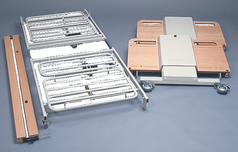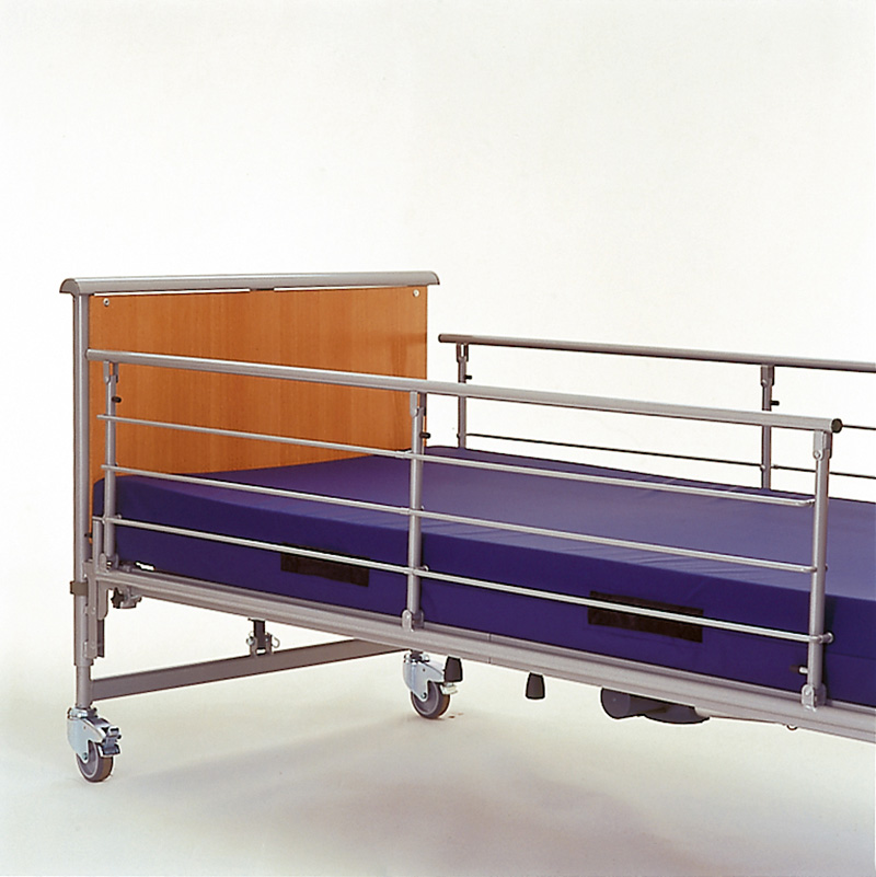 Ohne Aufrichter und Seitengitter kann das Pflegebett im häuslichen Bereich durch einen Holzumbau fast wie ein Wohnraumbett aussehen. Bei Bedarf kann ein "Aufrichter" zur Bewegungserleichterung rechts ODER links eingesteckt werden. Die praktische Höhenverstellung ist auch als Aufstehhilfe zu verwenden. Das Bett hat vier Rollen die einzeln gebremst werden können. An seitlichen Schienen können leicht Seitengitter eingebracht werden, die die Orientierung im Bett erleichtern und ein Herausfallen verhindern. Kopfteil-, Fußteil- und Gesamthöhenverstellung kann mittels Elektromotoren bequem und kraftsparend erfolgen. Eine ergonomische Handsteuerung ist auch für den technisch ungeübten Nutzer bedienbar.